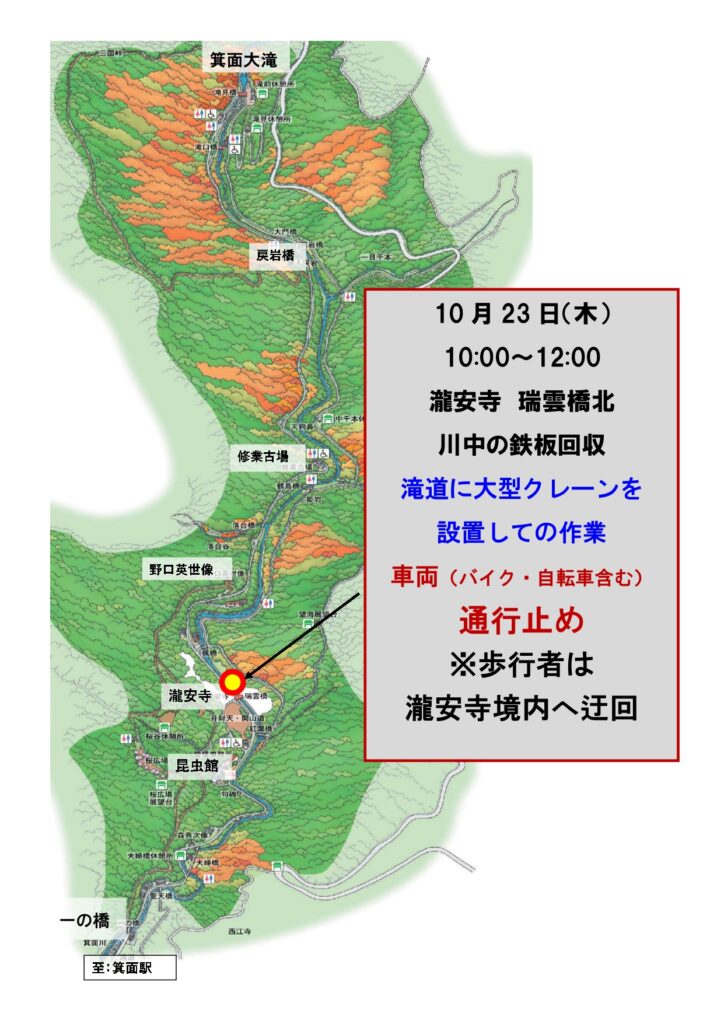 10月23日 箕面川内の鉄板回収作業(滝道の一時通行止めあり)
